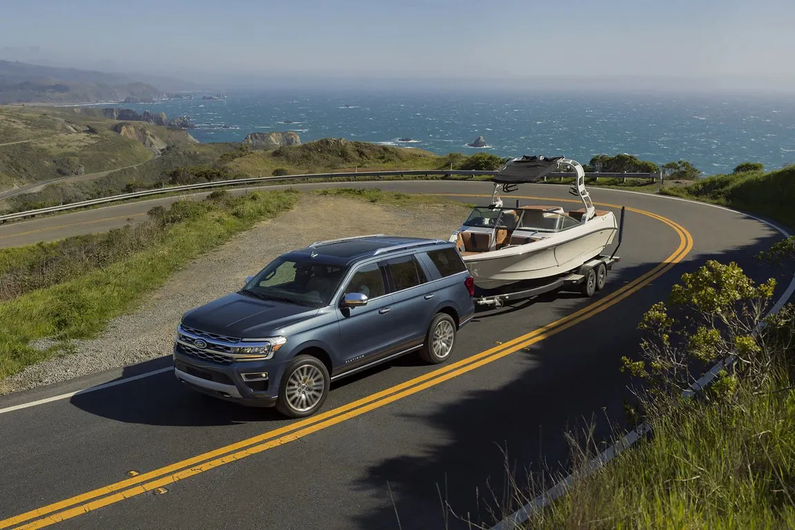 The 2022 Ford Expedition is a full-size SUV designed to deliver the capability you need. It comfortably accommodates up to 8 passengers and can tow and haul an abundance of cargo. Tow a boat or trailer weighing up to 9,200 lbs. when your Ford Expedition is equipped with the available Trailer Tow Package with Pro-Trailer Backup Assist™ 2.0 and Trailer Reverse Guidance.