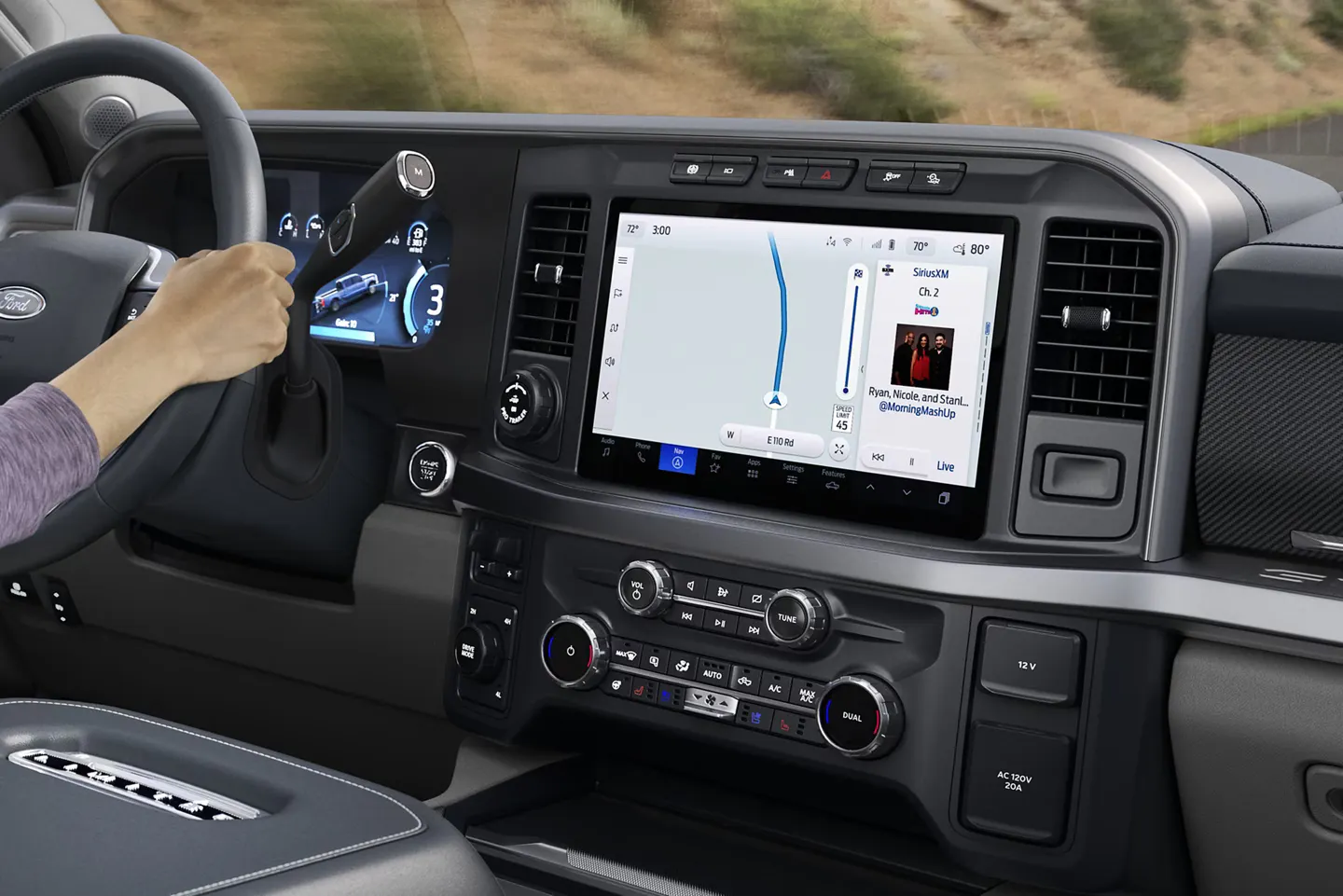 The 6.7L Power Stroke® Turbo Diesel incorporates a driver-activated engine-exhaust brake. It restricts the turbocharger’s exhaust flow to generate back pressure and slow the vehicle, providing reduced need for friction brakes while travelling downhill, regardless of vehicle load or road grade. Also, because the engine brake helps minimize having to apply pedal pressure, brake fade and lining wear are reduced. Three settings are available: On, Off and Auto. The Auto setting modulates engine braking as needed to help maintain the speed you want based on accelerator and brake pedal use.
